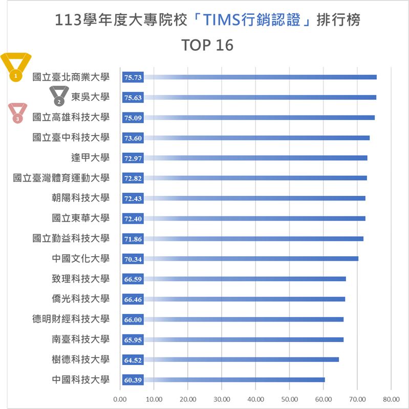 「TIMS行銷企劃認證」為經濟部iPAS唯一認可行銷認證,並於104人力銀行列為企業愛用證照前三名,以嚴謹的集中統考方式進行,客觀評比整體鑑別度。此次排行榜的推出,旨在促進行銷教育的持續進步與發展,並為學界與業界提供了一個公正、客觀的平台。
